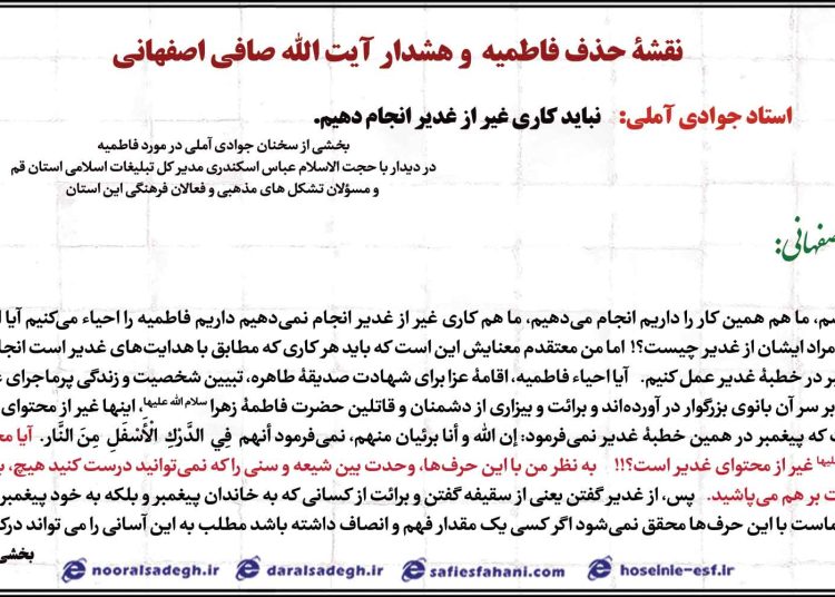 ادعاهای بزرگ و نقشۀ حذف فاطمیه و هشدار آیت الله صافی